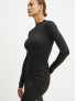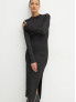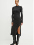 Опис: Елегантне приталене плаття з високою горловиною та довгими рукавами, виконане з тонкого еластичного трикотажу. Модель має ефектні складки та розріз, що додають образу жіночності та динамічності. Це плаття ідеально підходить для вечірнього або повсякденного використання в міжсезоння, поєднуючи комфорт і стиль.