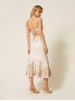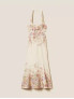 Опис: Сукня міді з чистого льону в силуеті fit & flare з приталеним верхом і розкльошеним подолом підкреслює талію та формує жіночний, але водночас легкий образ із квітковим мотивом у впізнаваному стилі Twinset. Завдяки довжині нижче коліна й м’якій лляній тканині модель ідеально підходить для сезону весна‑літо, забезпечуючи комфорт у спеку та свободу рухів під час ходьби. Бавовняна підкладка додає виробу комфорту й непрозорості, роблячи сукню практичною для повсякденних прогулянок, поїздок та урочистих подій, де важливі і зручність, і виразна естетика.