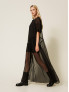 Опис: Ефектна довга сукня TWINSET з лінії Actitude, виконана з легкої напівпрозорої вуалі з тюлевими елементами. Модель має конструкцію «подвійної» сукні: зверху — повітряний прозорий шар, знизу — окрема сукня-комбінація з м’якої тканини в тон, що забезпечує комфортну посадку та коректне прикриття. Силует прямий із мʼяким розкльошенням донизу, що створює витягнутий, струмливий контур. Довгі рукави з напівпрозорої тканини додають легкості образу, а акуратний виріз горловини підтримує лаконічний, елегантний вигляд. Сукня ідеально підходить для вечірніх виходів, урочистих подій і особливих випадків, але її можна стилізувати й у сучасних міських образах — з грубими чоботами, жакетами чи шкіряними куртками. Колір: чорний.