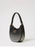 Опис: Компактна сумка-бохо з тканини, покритої рінстонами деграде, що створюють ефект плавного переходу кольорів. Оснащена короткою ручкою з екошкіри та застібкою на блискавку зверху для зручності. Унікальний дизайн доповнює овальний металевий логотип Twinset у золотистому кольорі з рінстонами. Ідеальний аксесуар для вечірніх виходів, поєднує стиль та функціональність.