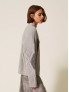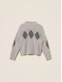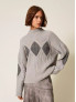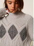 Опис: Светр від TWINSET виконаний із змішаної пряжі в незвичайній комбінації вовни, альпаки та акрилу. Має крупну в’язку з інтарсією ― візерунок у вигляді ромбів із контрастним ліуреxом, комір типу crater neck, довгі рукави з фактурною в’язкою, манжети і низ у резинці, широкій силует (wide fit) і фірмову пластинку-логотип Oval T на спинці. Модель підходить для стильних повсякденних образів, добре комбінується зі штанами, джинсами або спідницею.