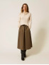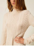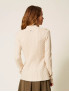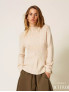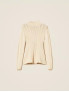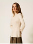 Опис: Вишуканий джемпер-водолазка з лінії Actitude від TWINSET, виконаний у текстурованій в’язці: ромби та «коси» створюють ефектну фактуру поверхні. Модель має приталений силует з легким розширенням до низу (svasata), високий комір-lupetto та довгі рукави. На задній частині розташована металева пластинка з логотипом бренду. Колір «Crystal Sand / Beige» додає образу м’якості та універсальності. Ідеально підходить для стильних міських образів: комбінується з класичними брюками, джинсами Mom-fit або спідницями міді, а також під жакети чи пальто.