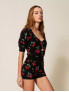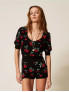 Опис: Джемпер з м’якого бавовняного трикотажу має вільний крій та злегка спущену лінію плеча, що створює розслаблений силует і забезпечує комфортну посадку. Короткі рукави, округлий виріз горловини та розміщений по всій поверхні принт із мотивом вишень надають виробу грайливої, сучасної естетики, роблячи його акцентною річчю у повсякденному гардеробі. Завдяки 100% бавовняному складу джемпер добре дихає, приємний до тіла й підходить для теплої пори року та міжсезоння, легко поєднуючись із трикотажними шортами 261TT3242, джинсами або спідницями у casual та sporty-chic образах.