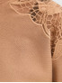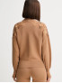 Опис: Модний жіночий жакет з оверсайз фасоном у білому кольорі. Має високий комір, регулювальні шнурки з зовнішнім дизайном із глянцевого металу, і вишиті вставки з органзи та мережива. Виготовлений із м'яких і комфортних матеріалів для теплої і сучасної зими 2025/26.
