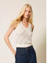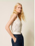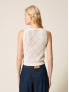Опис: Облягаючий трикотажний топ з ромбовидним візерунком та аплікаціями з перлин, круглим вирізом і короткими рукавами для елегантної посадки. Лаконічний крій з м'якої бавовняної тканини забезпечує комфорт для багатошарових чи casual образів весна-літо, поєднуючи вишукану естетику з практичністю та високою зносостійкістю цілий рік.