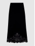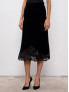 Опис: Спідниця білого кольору зі злегка розкльошеним кроєм, довжиною міді. Модель виготовлена з еластичного трикотажу з високим вмістом віскози, доповнена вставками з органзи та декоративним мереживом по низу. Має еластичний пояс для комфортної посадки. Ідеальний варіант для стильних образів сезону осінь-зима 2025/26.