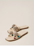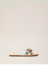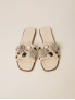 Опис: Сланці на пласкій підошві виконані з м’якої замші та мають широку перемичку через підйом стопи, що забезпечує комфортну посадку й стабільну фіксацію ноги під час ходьби. Верх прикрашений об’ємними декоративними елементами у вигляді каменів і квітчастих аплікацій, які додають взуттю виразного, жіночного характеру та роблять його акцентною деталлю літніх образів. Завдяки шкіряній устілці та гнучкій гумовій підошві сланці зручні для щоденного носіння в теплу пору року, підходять як для міських прогулянок, так і для відпочинку, легко поєднуючись з сукнями, спідницями та лляними комплектами.